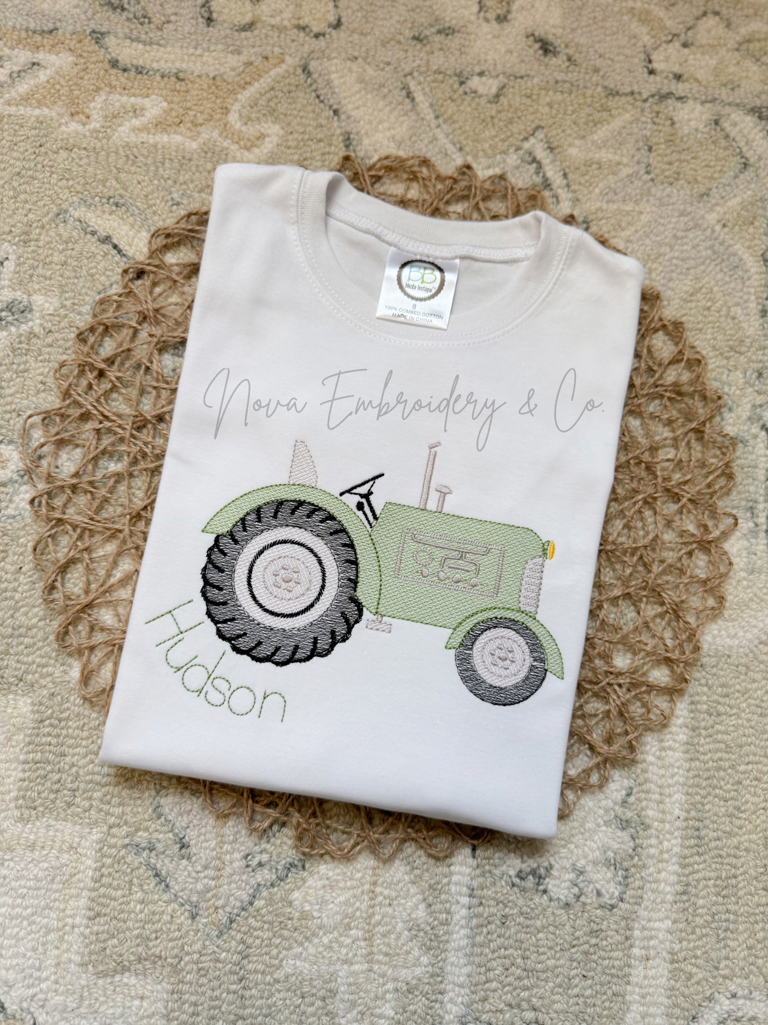 Discover the perfect blend of charm, quality, and personalization with our embroidered boys’ T-shirts—offered in both short sleeve and long sleeve options. Each shirt is crafted on a soft, premium cotton tee and features beautifully detailed embroidery designed especially for little boys who love adventure, animals, tractors, trucks, and the great outdoors.
