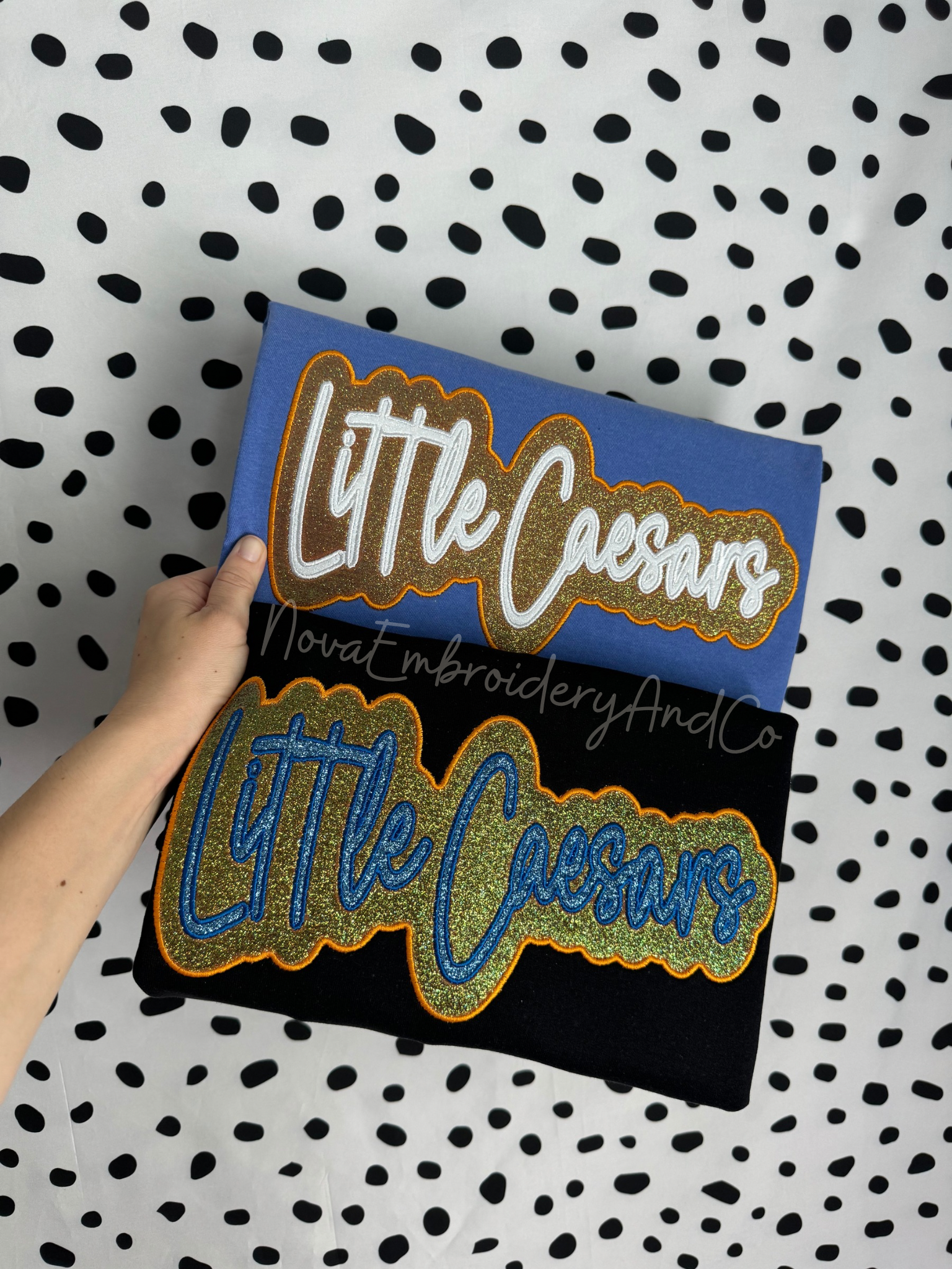 Get ready to sparkle and shine with the Double Stack Glitter Crew or T-shirt! Our customizable design is perfect for teams, schools, and events. Embroidered with shimmery glitter fabric, it adds just the right touch of glamour and sophistication to any occasion. Show off your logo or design with style! Please leave personalization details in the "Special Instructions Box at checkout" and if you need something custom just shoot us an email with the image! Don't forget to let us know colors!