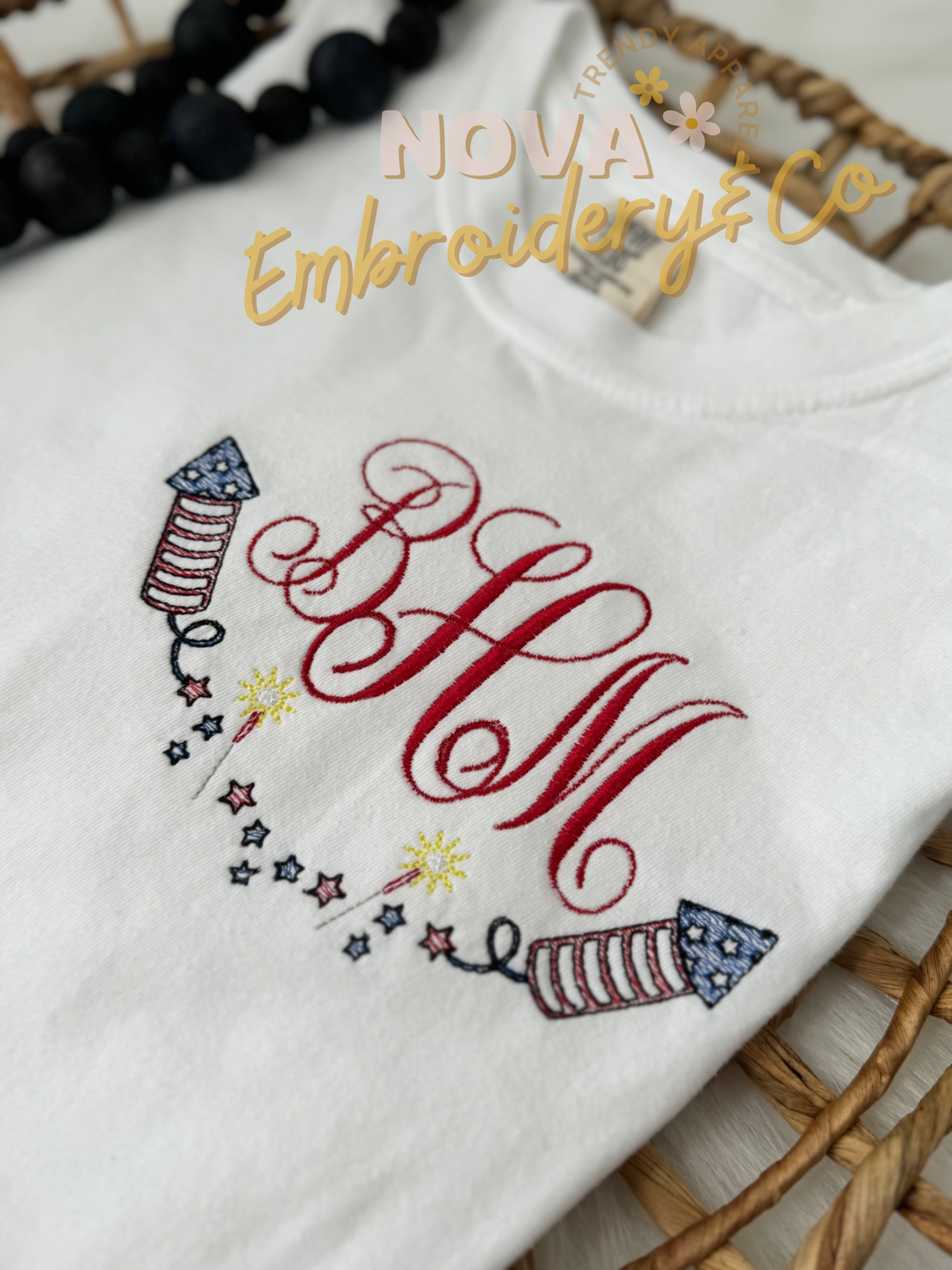 Embroidered 4th of July Custom Monogram Tshirt