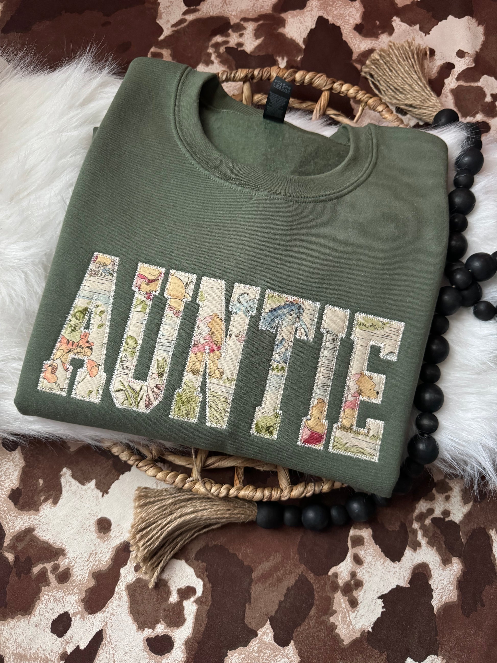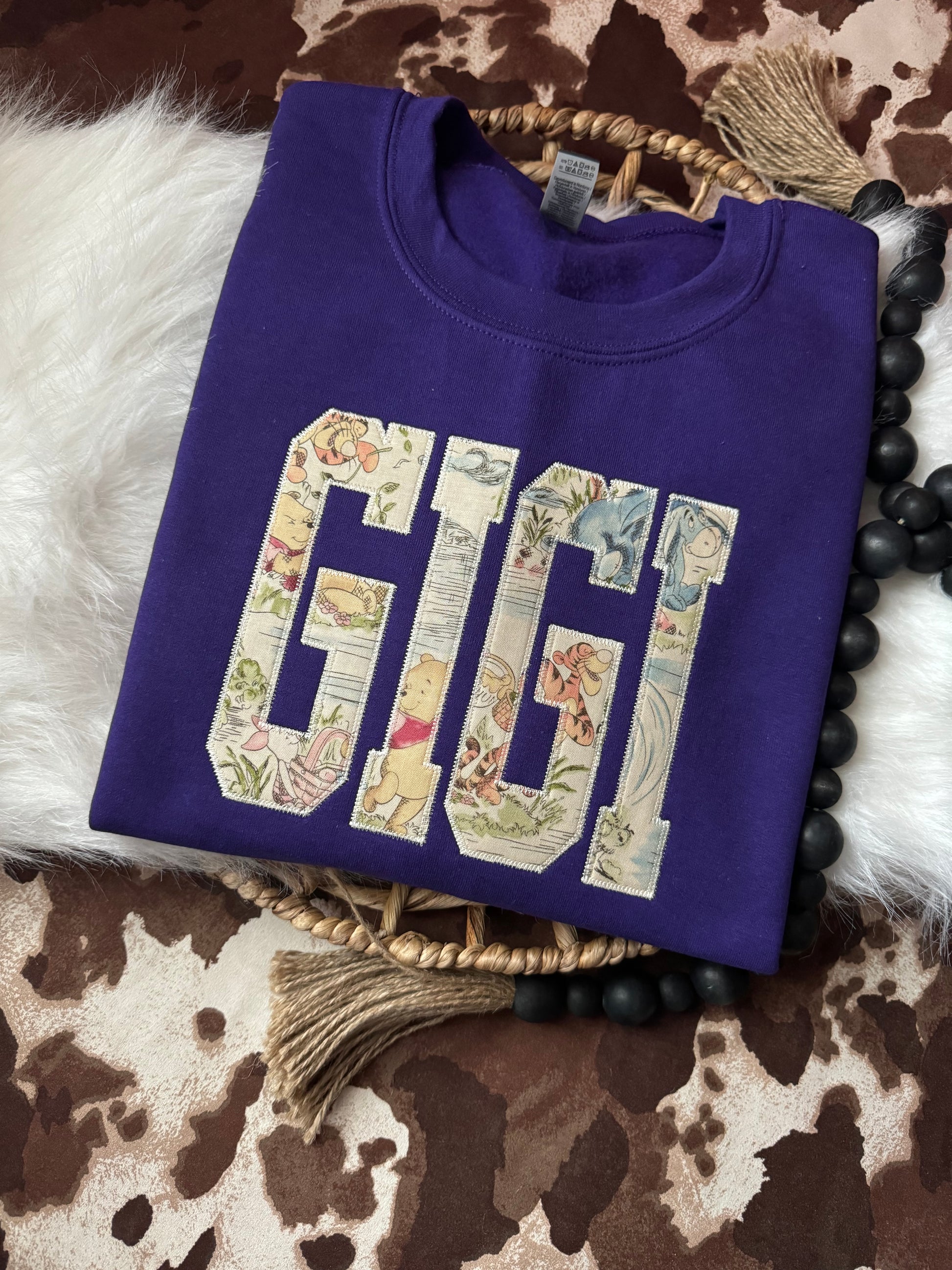 This precious custom saying shirt is the perfect addition to your closet! This can be customized to any saying ex, Mama, Gramma, Gigi, Auntie, ect. This is a vintage pooh bear fabric on out classic comfort colors tees!