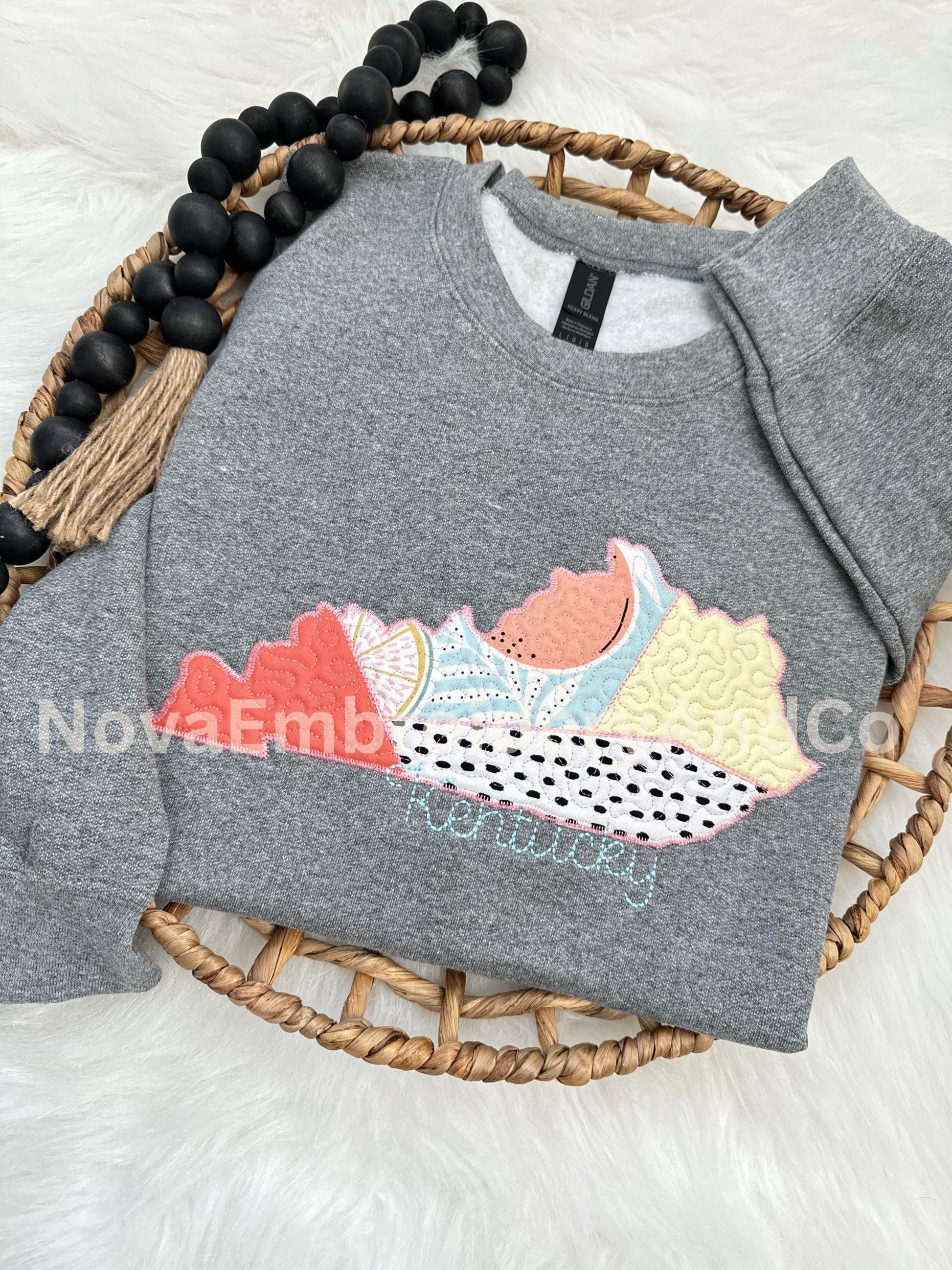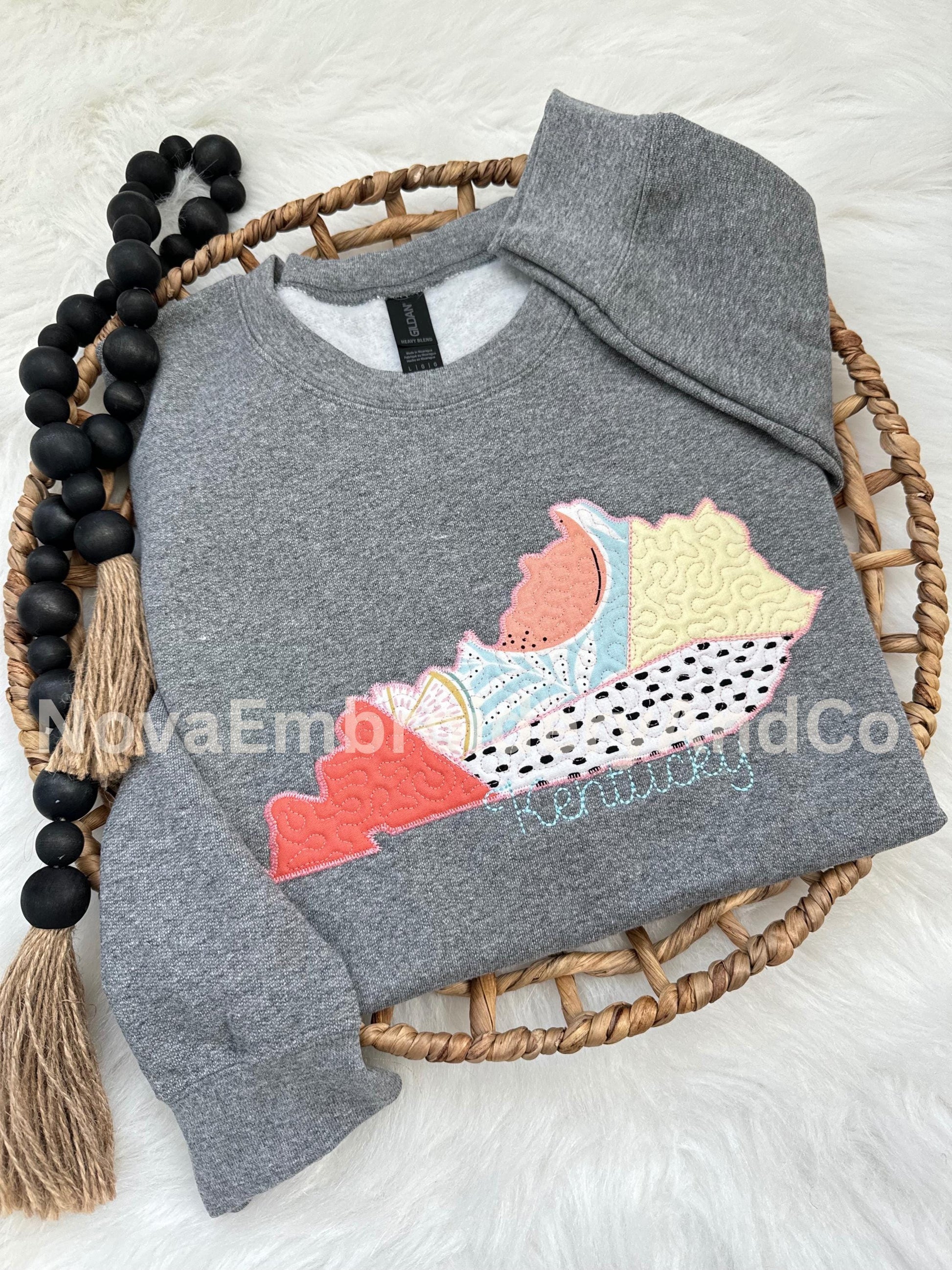 Quilted Kentucky Sweatshirt, State Sweatshirt, Embroidered Sweatshirt, Vintage Embroidery, KY Sweatshirt, Quilted Embroidery, KY Gift